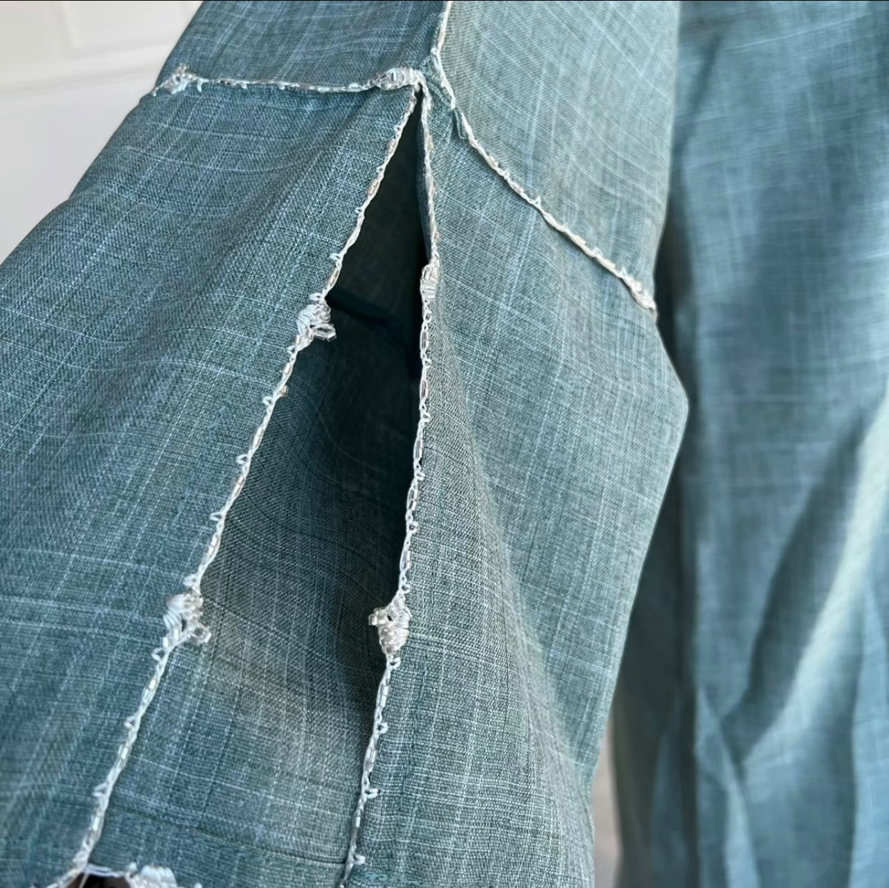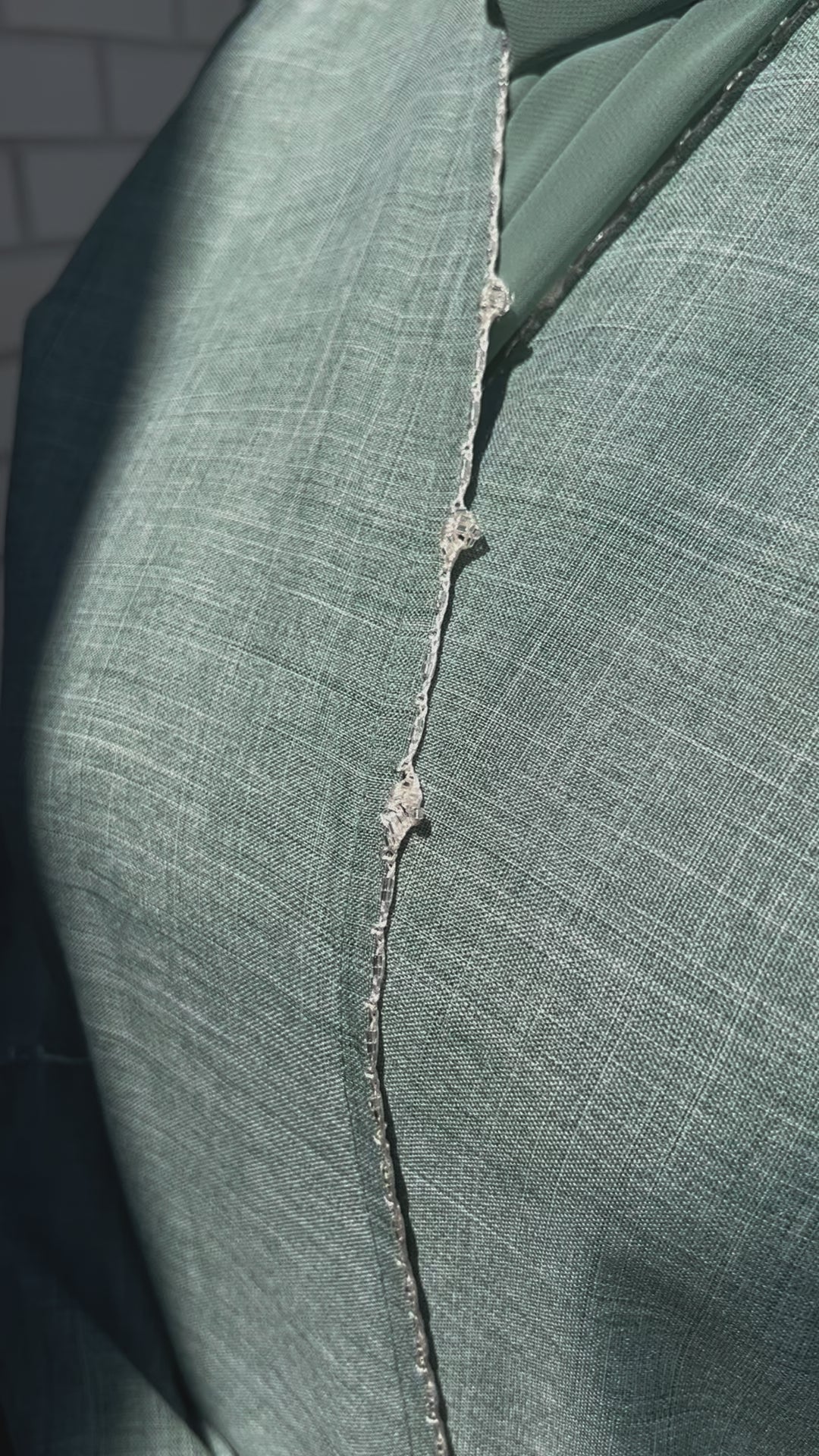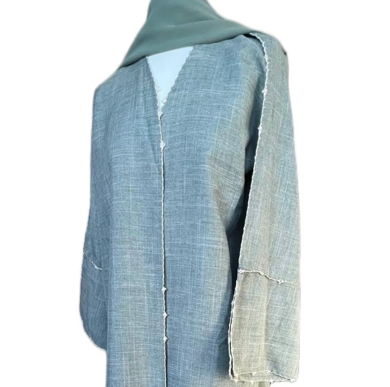 Stunning Mint green Linen Abaya with beautiful handwork gemstones with embroidery outline. Comes with a large/long matching scarf